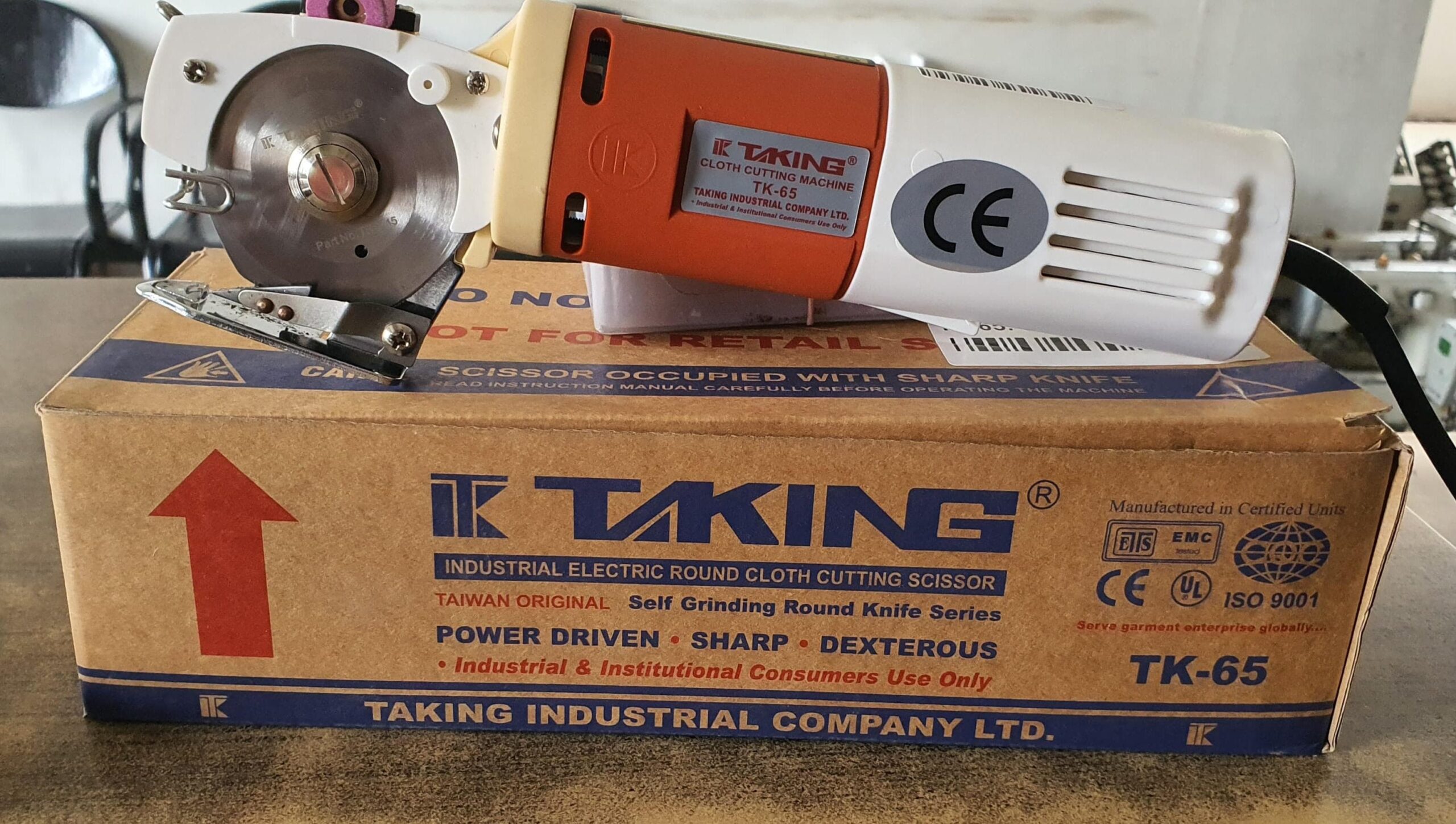 The Taking Industrial Round Knife Cutting Machine (65 mm) is a high-performance, electrically powered fabric cutter widely used in garment and textile industries. Designed to make precise, quick, and efficient cuts, this rotary fabric cutter features a sharp, circular blade—65 mm in diameter—ideal for handling multiple layers of fabric and a range of textile materials
